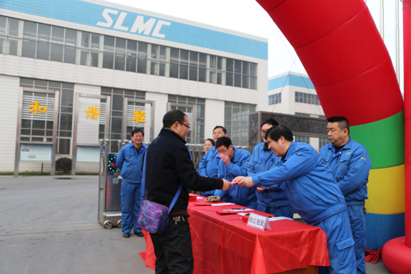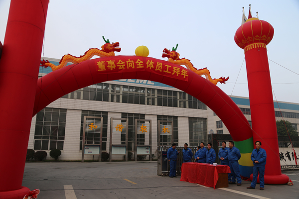 早晨7:28分,公司董事长潘荣敦、总经理彭宜纯率领全体中高级管理人员站立在公司大门口,恭迎春节第一天前来上班的员工并祝贺新年,董事们还现场为每位员工发放了红包。