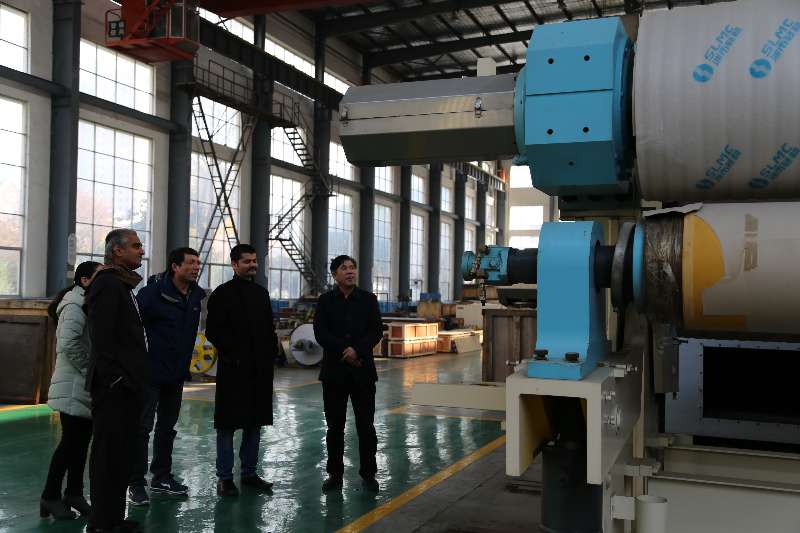在总经理彭宜纯、总工程师张晓磊、副总经理王良桥的分别陪同下,两批客商参观了公司生产车间和技术中心展厅,在生产的第一现场,客商认真观摩了设备的生产流程,工作人员就具体的产品技术参数为来访客商进行了详细说明。参观中,彭总介绍说,公司利用消化引进技术结合自主创新生产的涂布机、膜转移、压光机产品质量可靠、性能优越,目前成功出口印度、印尼、伊朗、乌兹别克斯坦等国家和地区,尤其近几年公司积极融入国家“一带一路”大战略,已成功为印度用户提供了包括引纸系统、干燥系统、涂布系统、施胶系统、压光系统在内20多条涂布生产线项目改造,赢得了印度客户的一致好评,树立了品牌!